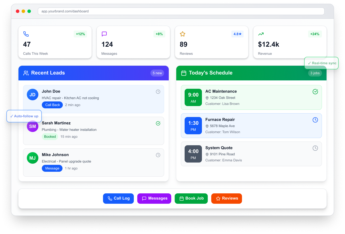 Everything comes into one place now, so calls and messages don’t get lost. We respond faster and book more work without chasing people down.